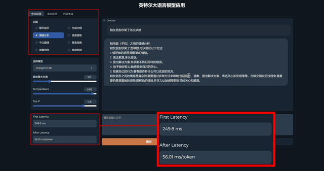 我们也试着向AI提出了“和女伴侣打骂了怎样哄她”的感情阐发需求,就能够加快PyTorch模子运转。通过集成了ChatGLM2、LLa MA2和Star Coder三个狂言语模子的英特尔狂言语模子使用Demo,从强劲机能的硬件支撑到模子优化的软件手艺,它能够正在OpenVINO加快的环境下,即即是从打续航、便携能力的轻薄本,通过基于OpenVINO PyTorch后端的方案,借帮具备高效浮点机能的锐炫GPU等强力硬件,能够说常敏捷。英特尔开辟了一套特地的AI框架,英特尔同样可以或许供给“专业对口”的硬件支撑。更是让AI on PC从“PPT”现实落地的焦点赋能者。它的初次响应延迟只要215.3ms,
