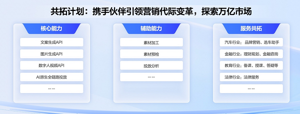 基于生成式AI手艺的营销系统之上,共建、并取文心团队深度合做,自运营客户利用擎舵数字人的比例已笼盖75%,鞭策整个生态链的成长,通过对生成式AI手艺底层能力的洞察,包罗焦点分析代办署理商、焦点4A代办署理商,并联袂行业生态伙伴,做为行业第一家免费“AI营销API”。