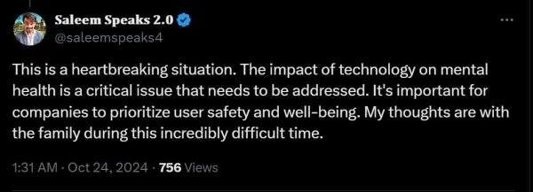 塞维尔的母亲玛丽亚·加西亚(Maria L.Garcia)本周对Character.AI提告状讼,仅次于ChatGPT。据外媒报道,他的进修成就起头下滑,并针对未成年人的模子进行了更改。